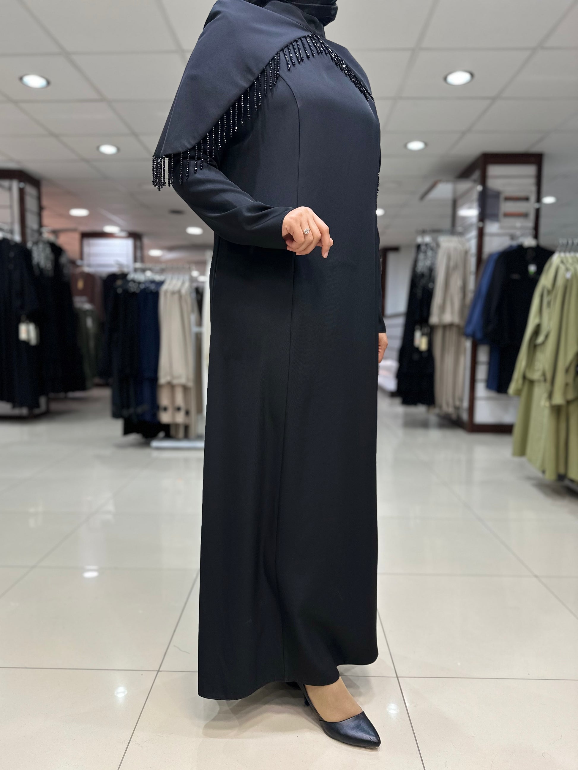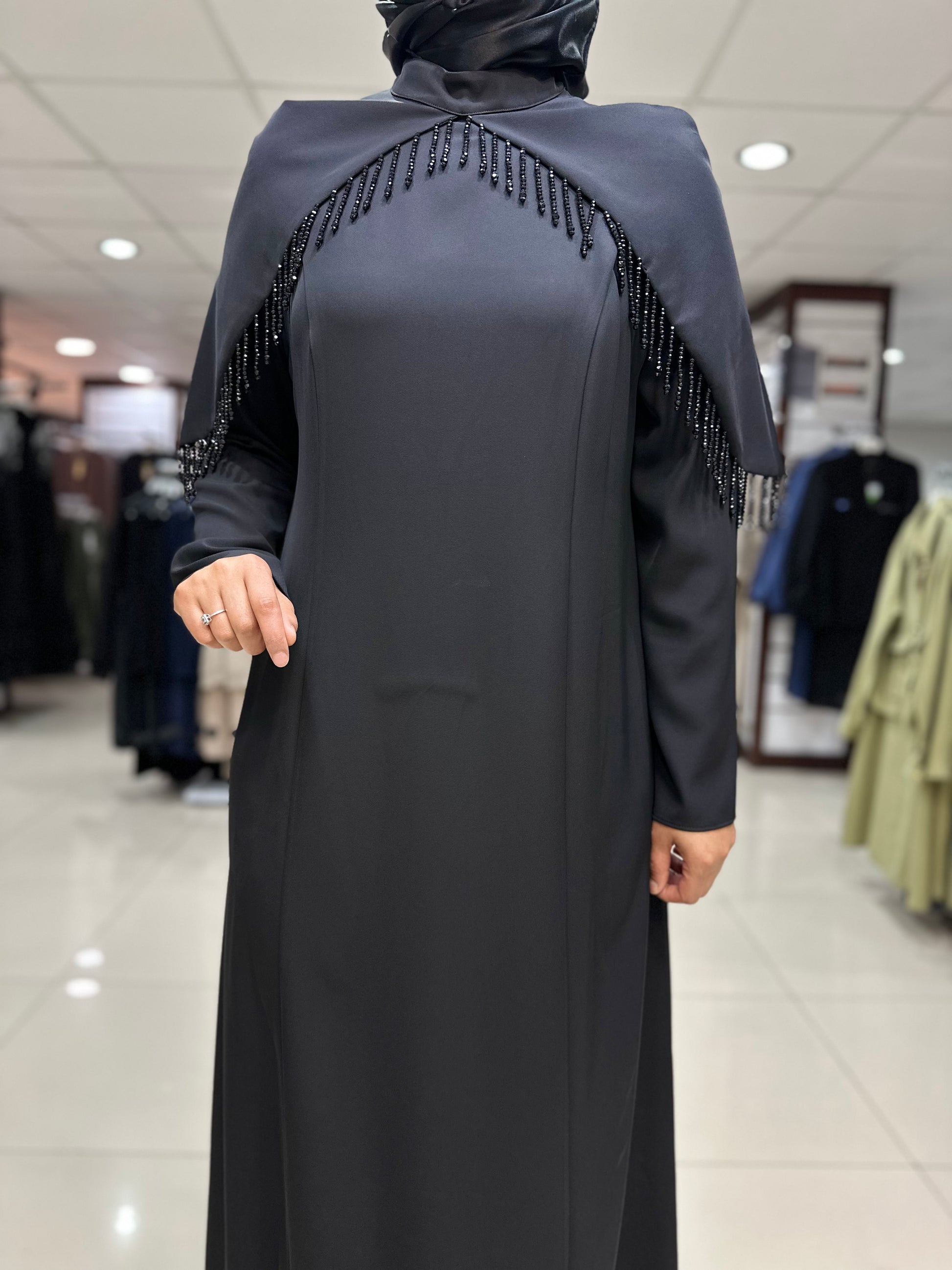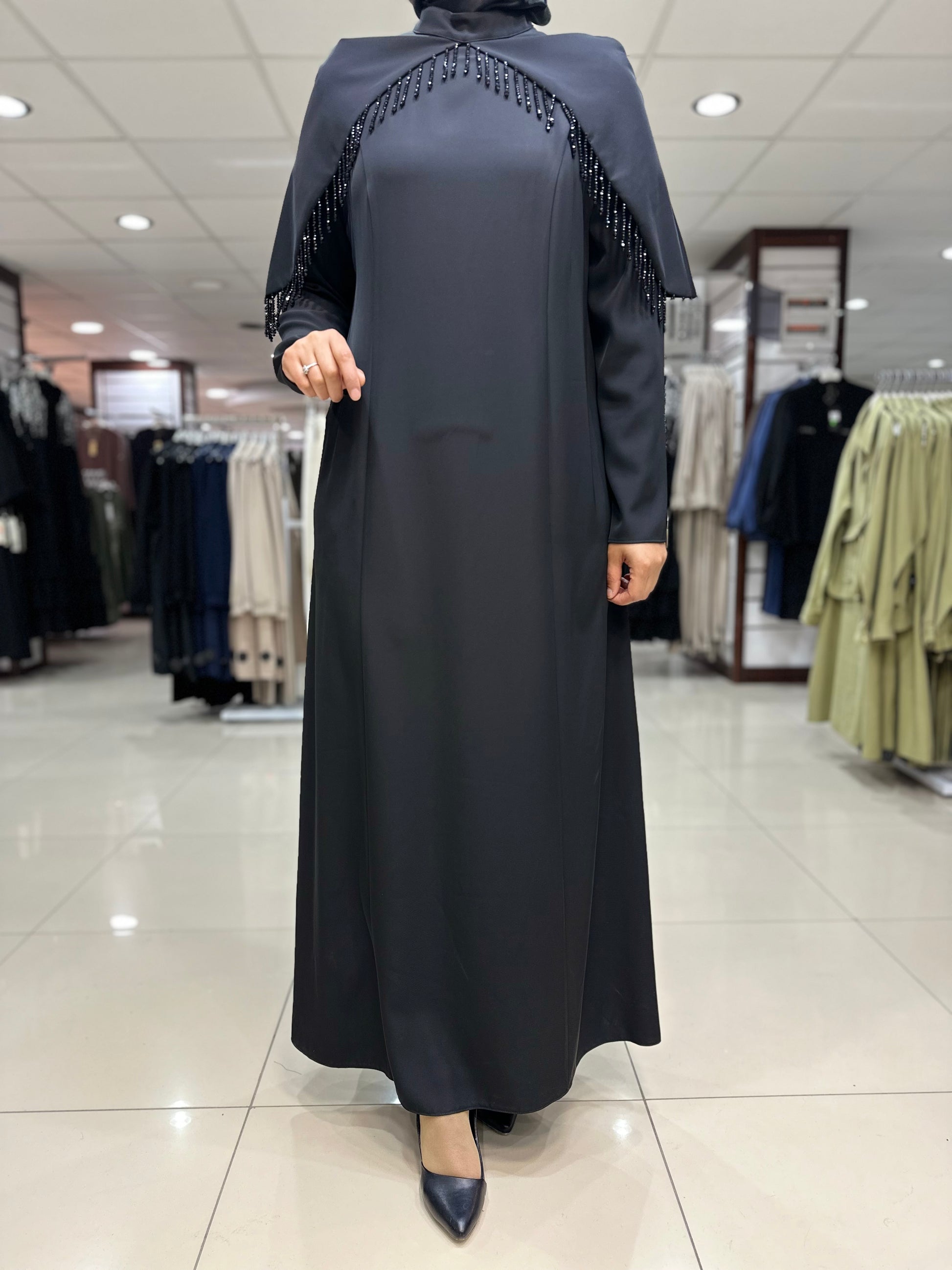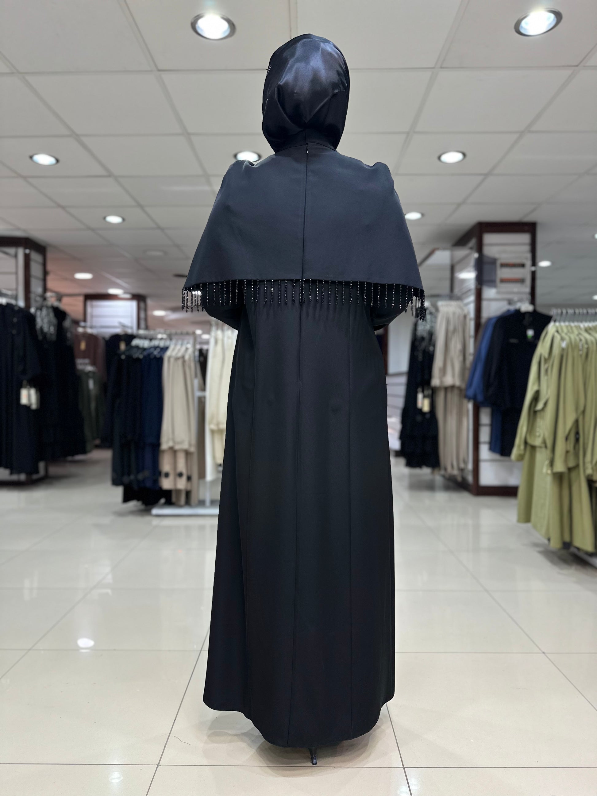 tam kalıp pelerin detaylı pelerin uçlarında boncuk işlemeleri mevcutur balık kesim sırt yarım fermuar