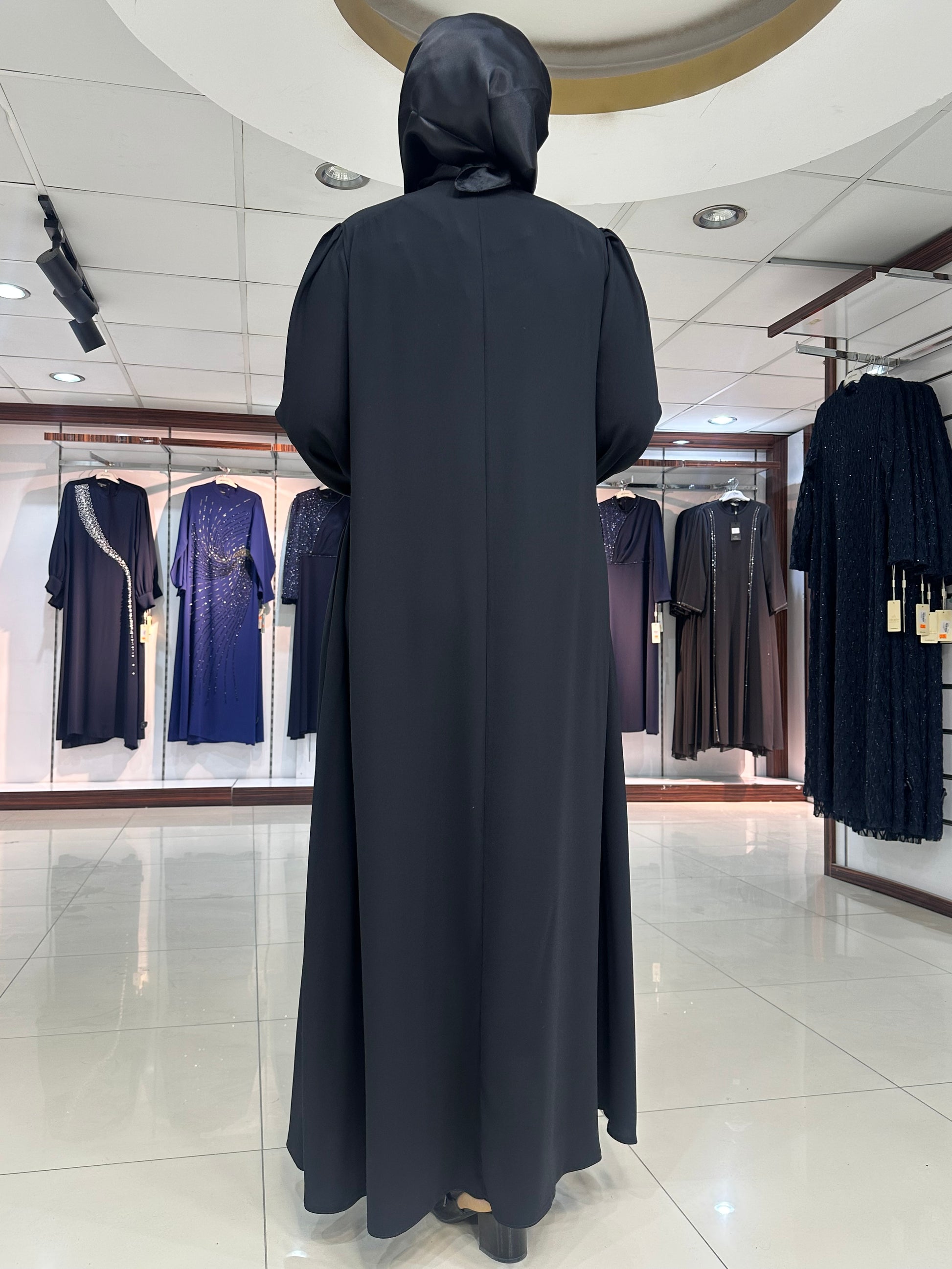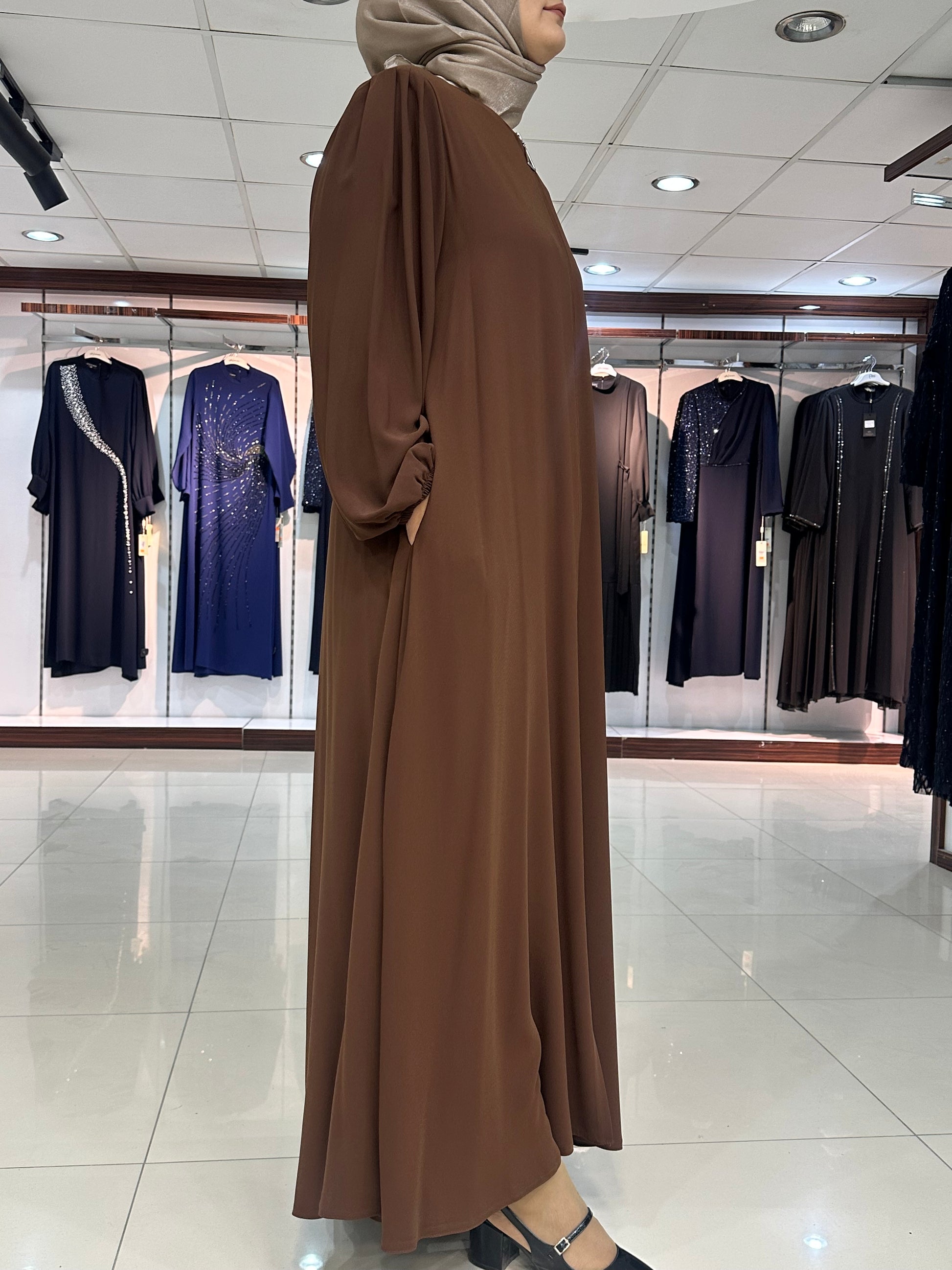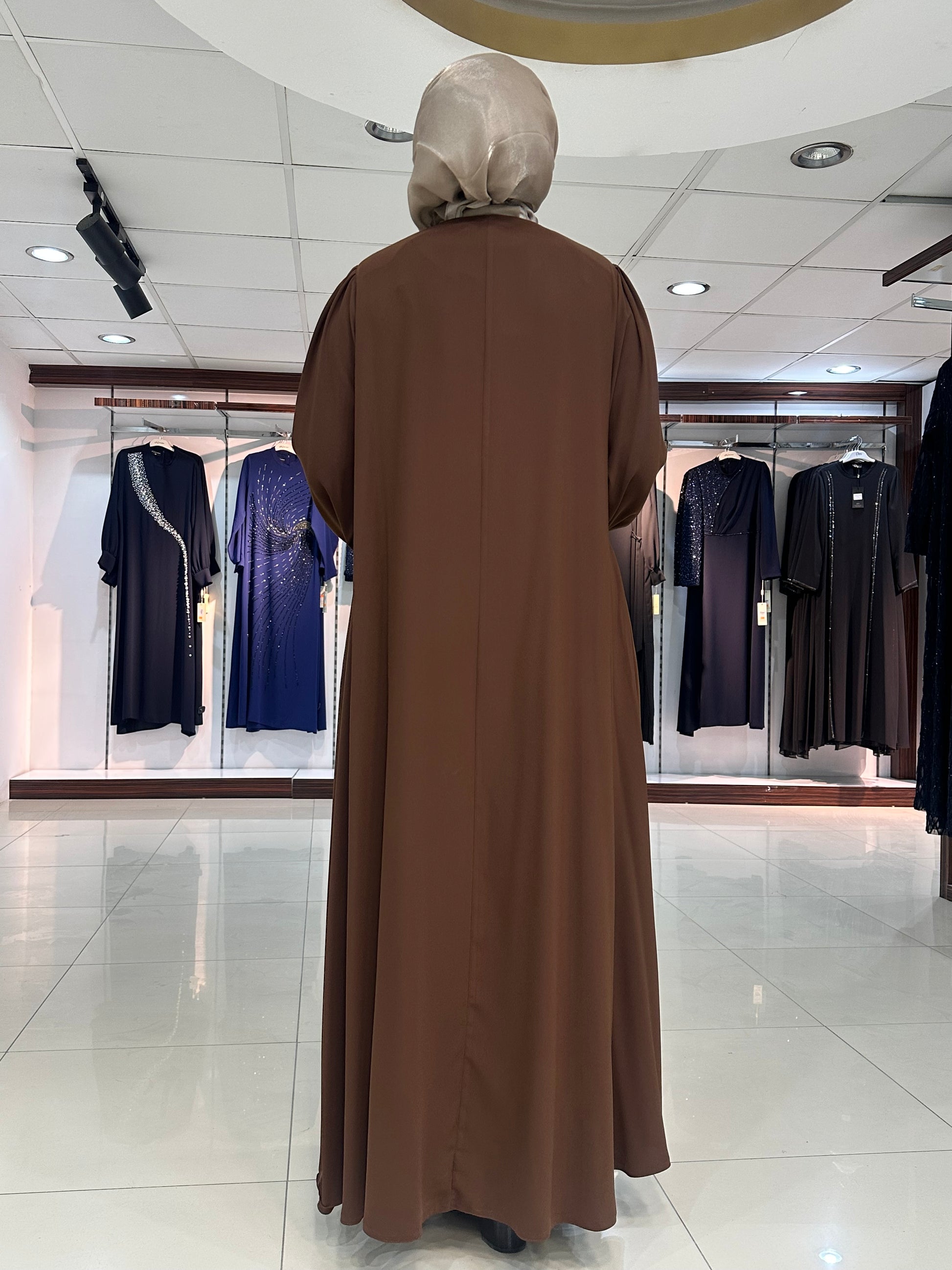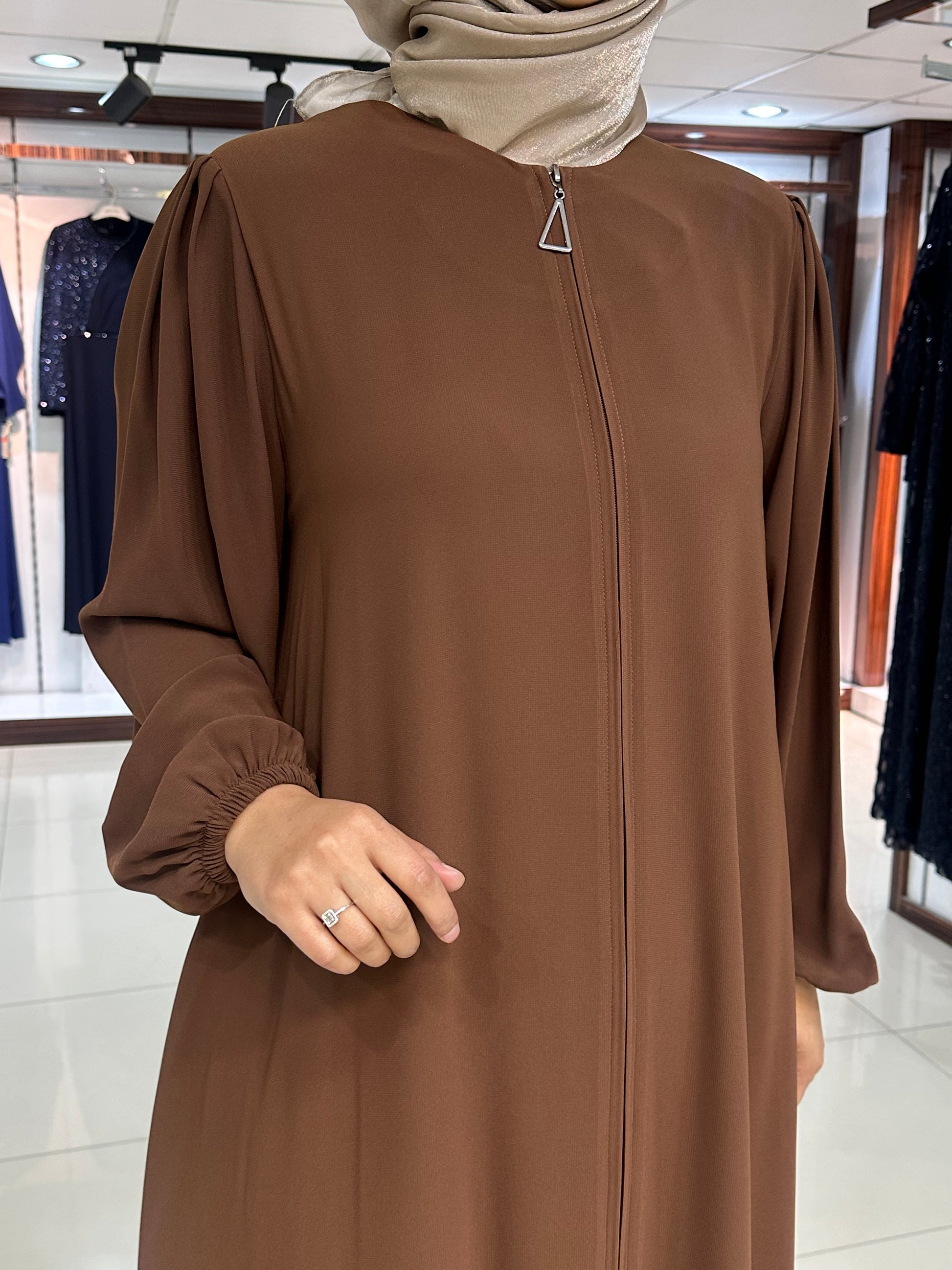 Omuzları pileli, kol ağızları lastikli, boydan fermuarlı, sıfır yaka, mevlana kesim, yandan cepli modelimizdir.