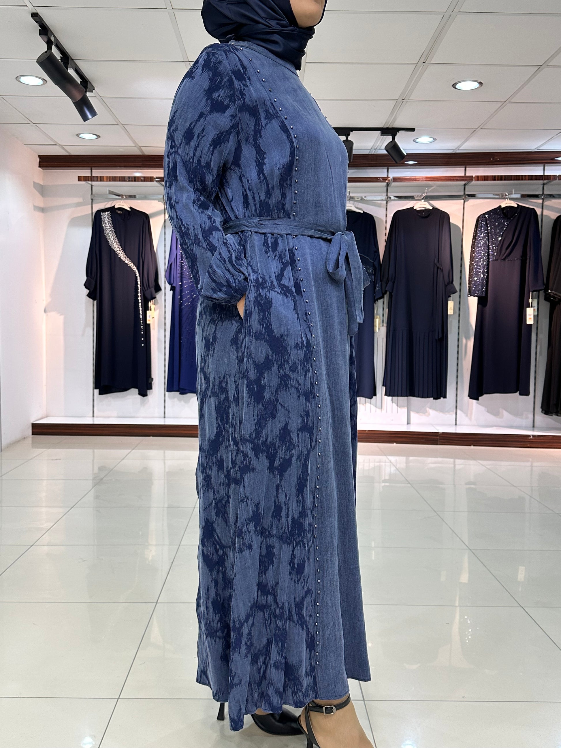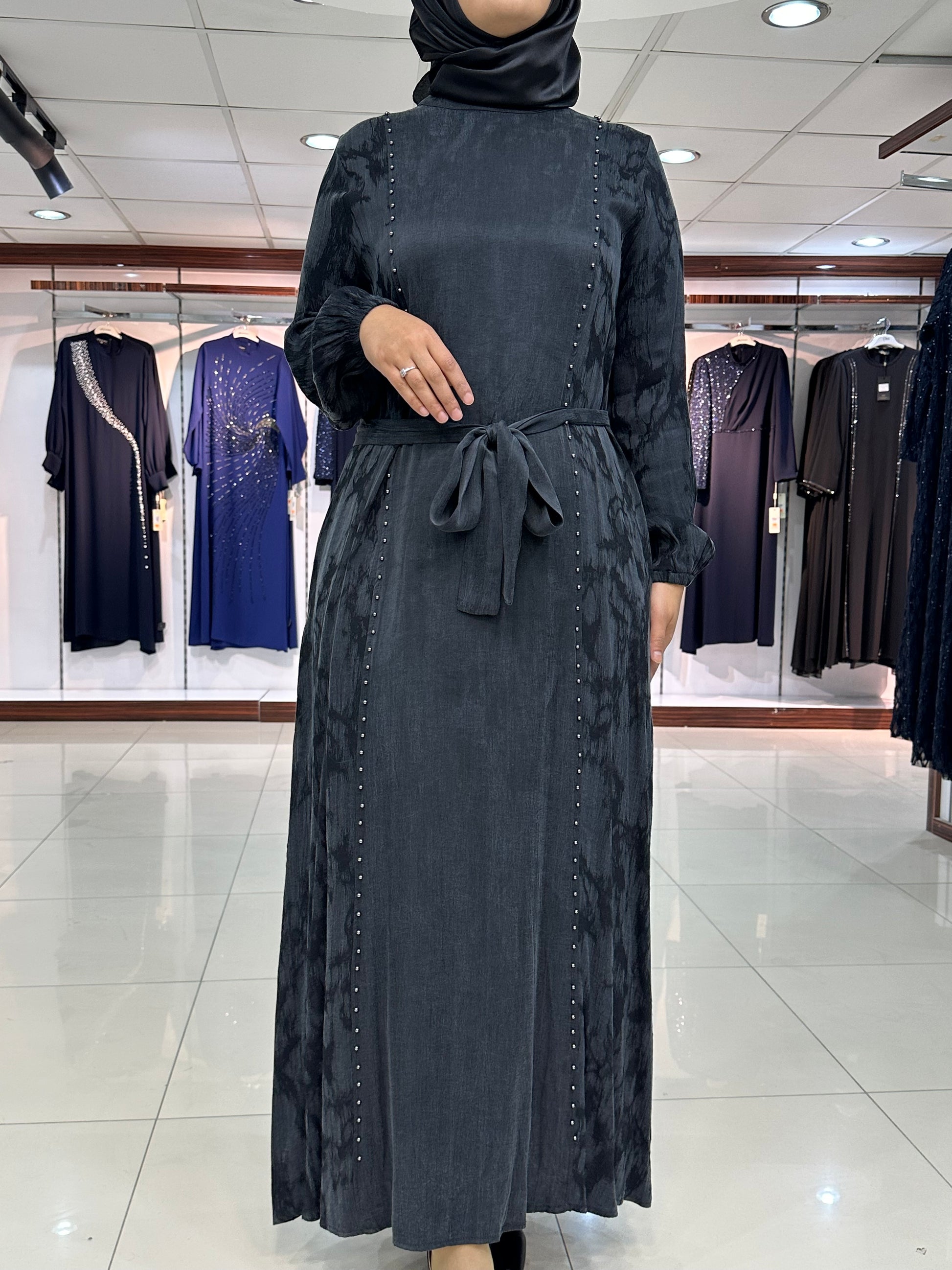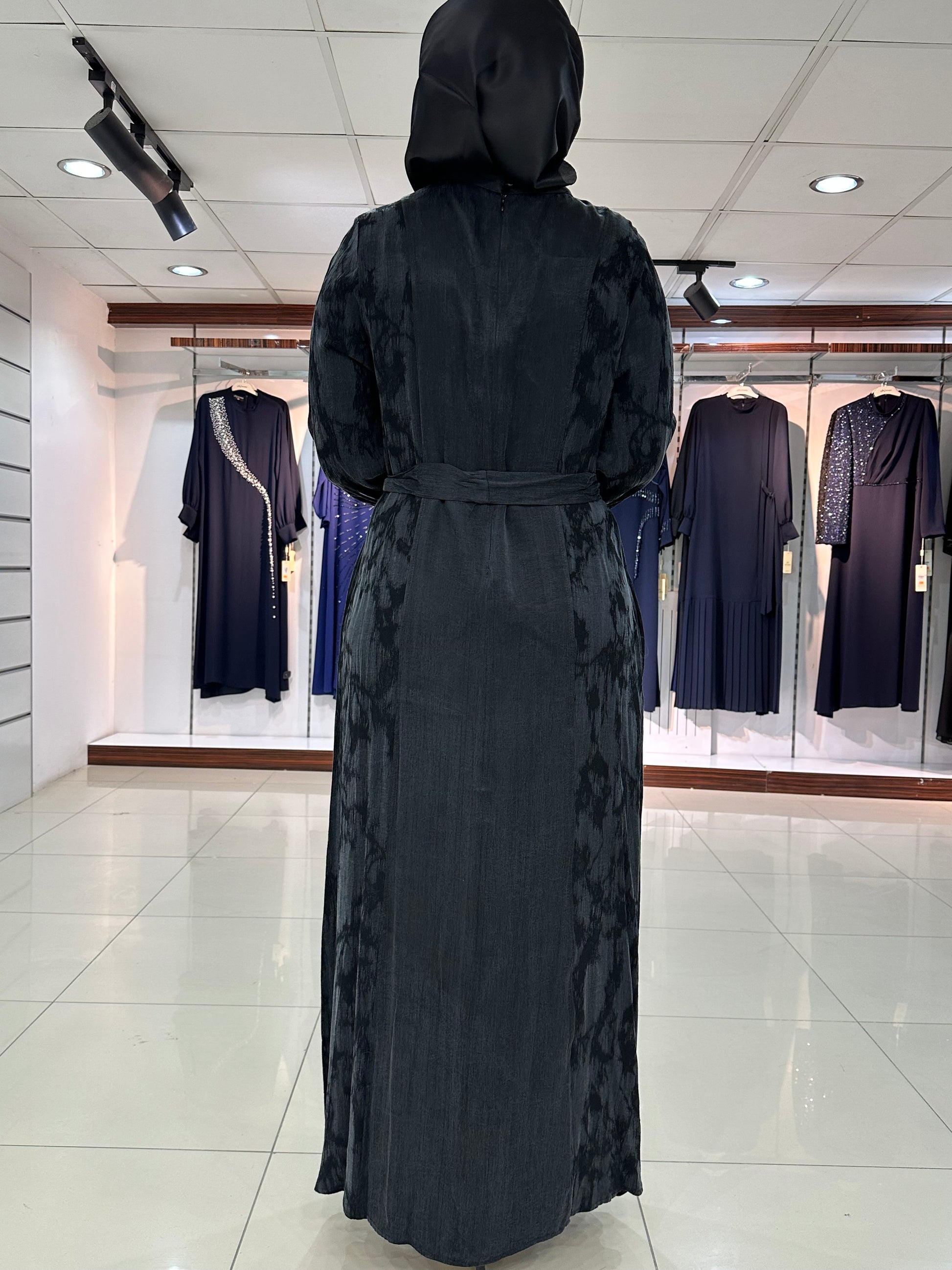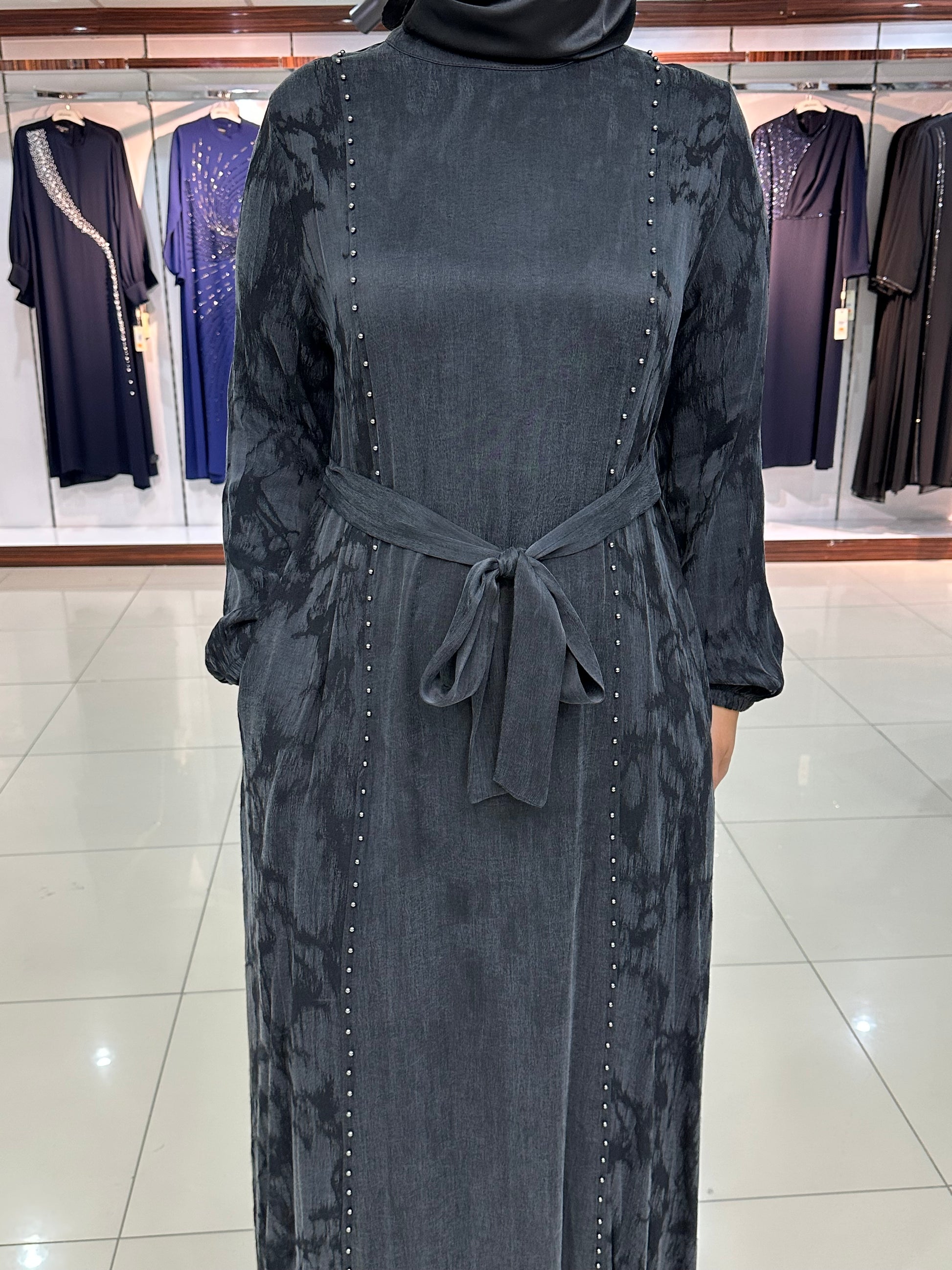 Rahat kalıp, seyyar bağcıklı, sırt yarım fermuar ve kol ağızları lastikli, zımbalı boncuk işlemeli modelimizdir.
