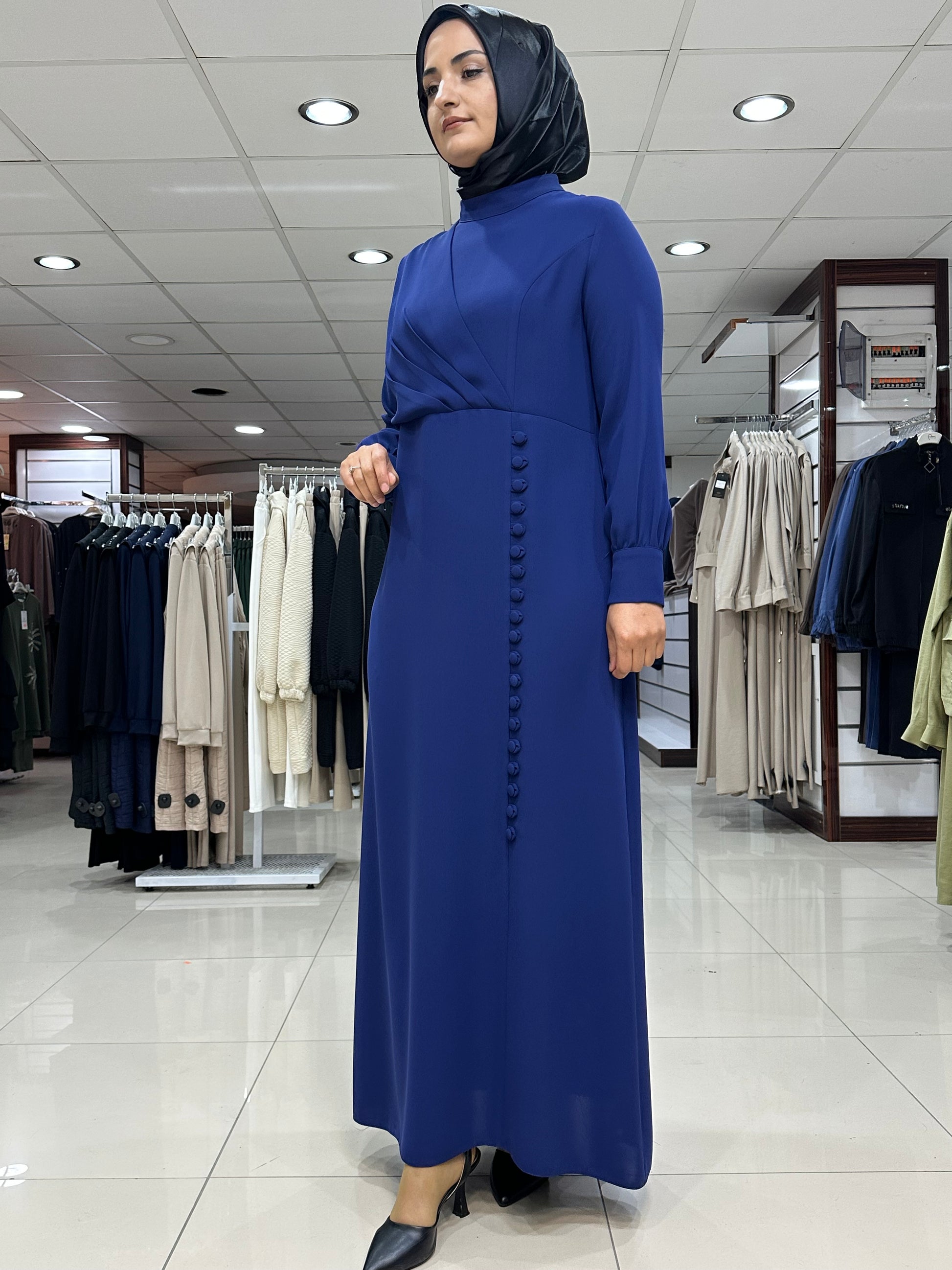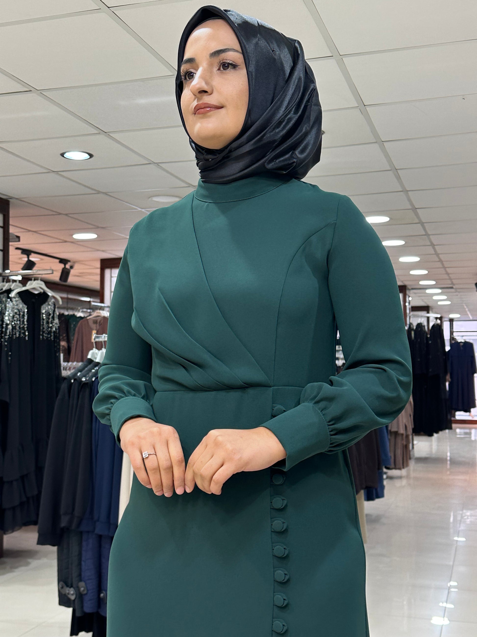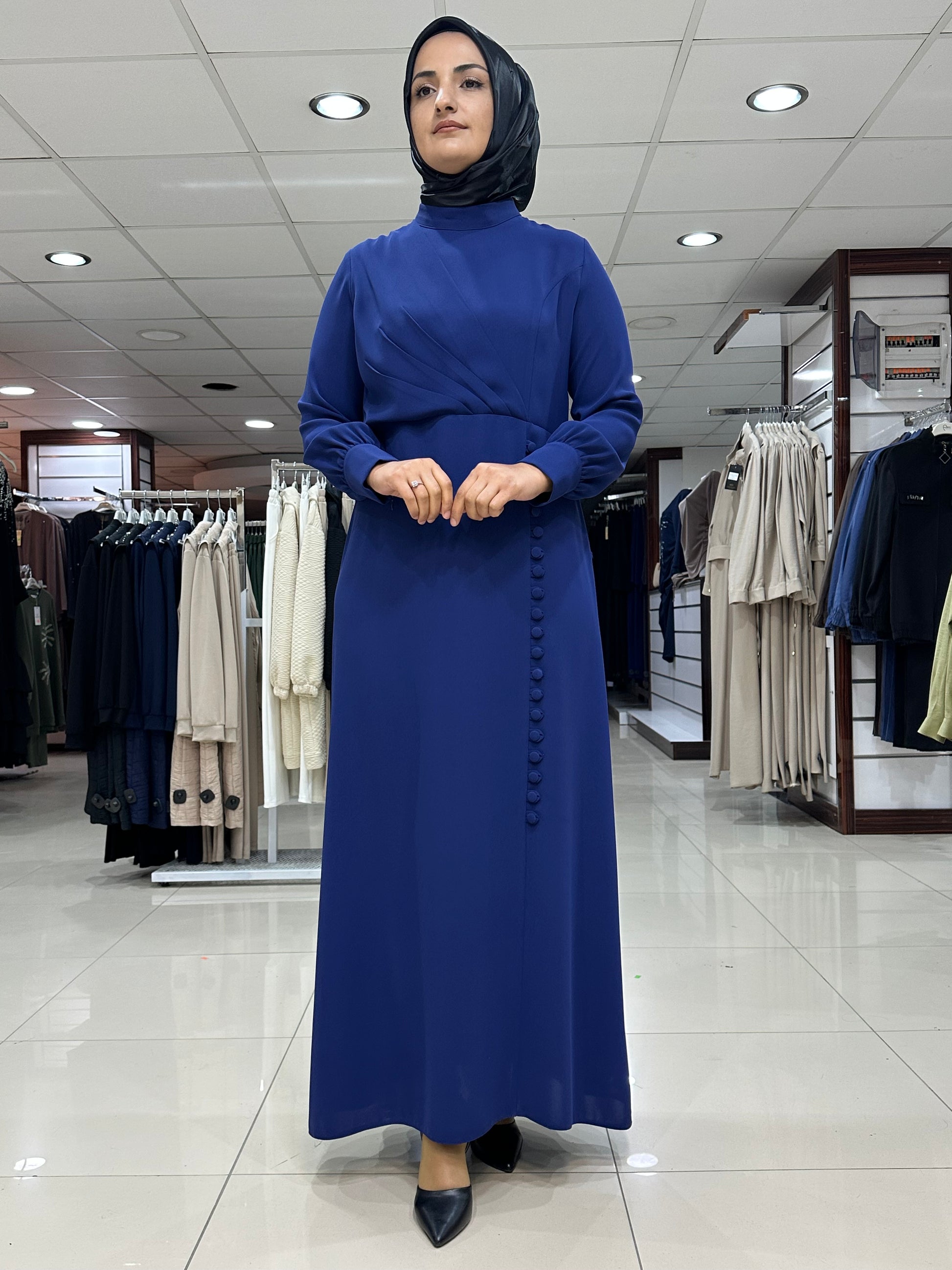 Tanlarda Düğme İşlemeleri Sırt Yarım Fermur Kolları Gizli Fermuarlı Önde Yan Parça Detay Astarsız