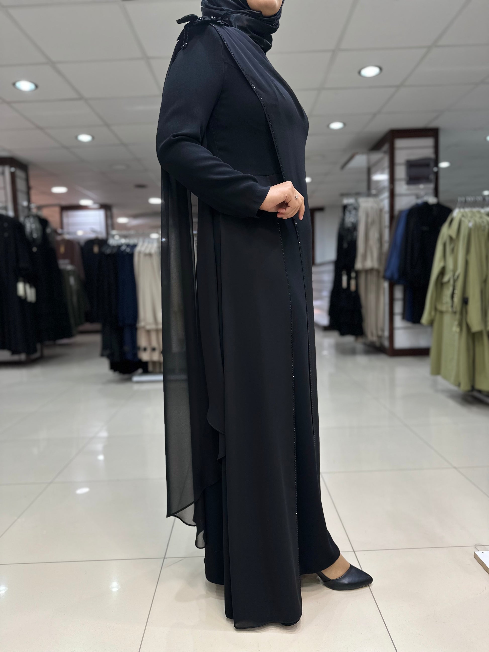 taş işleme pelerin parçası ve gül detayıyla özel günlerinizde şıklık ve zarafet sunar rahat kalıbı sayesinde özgür hareket sağlar