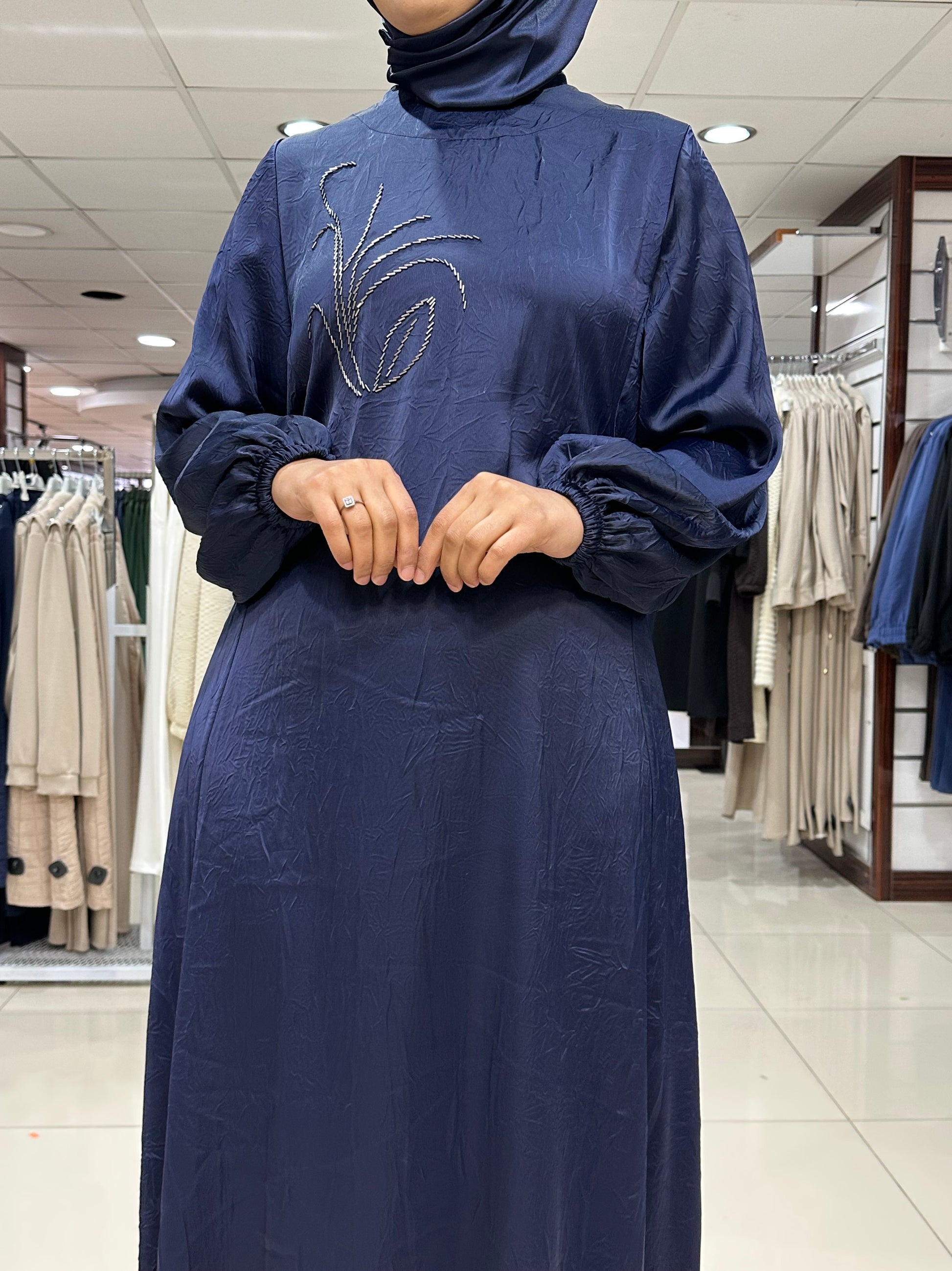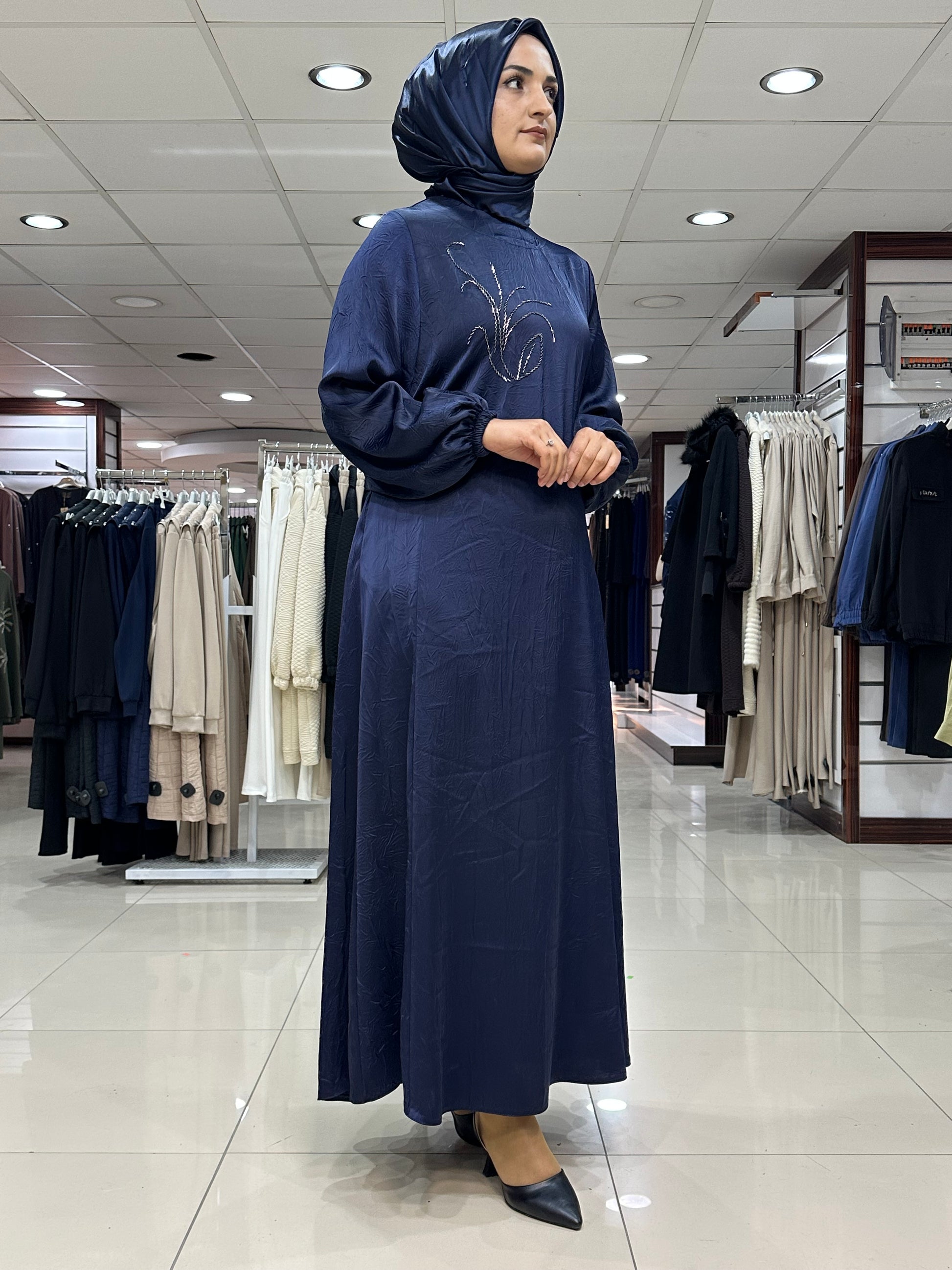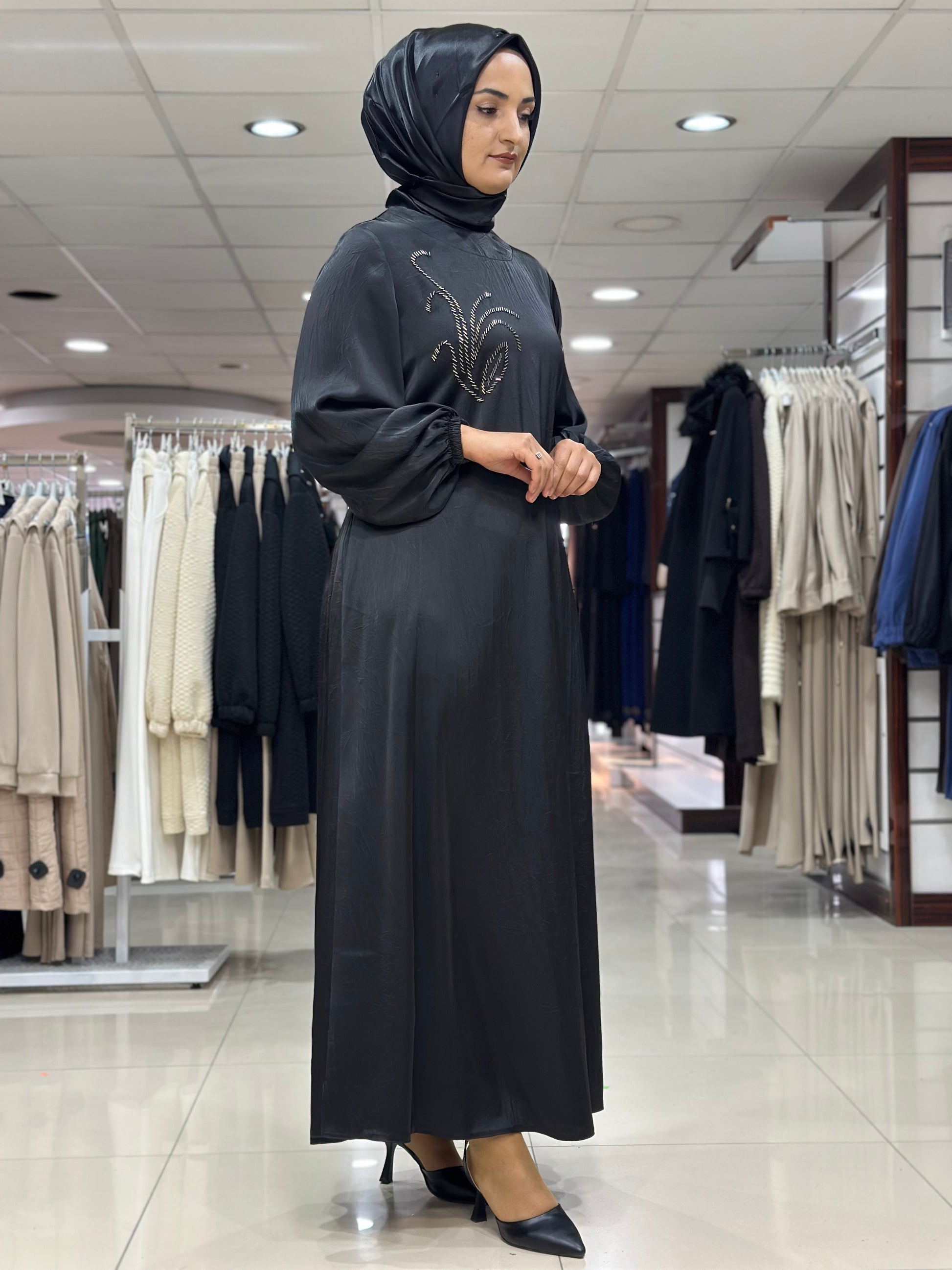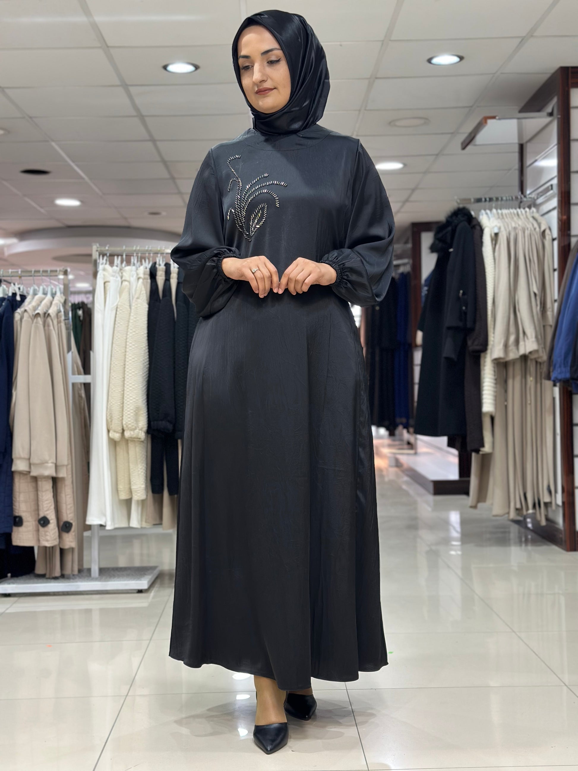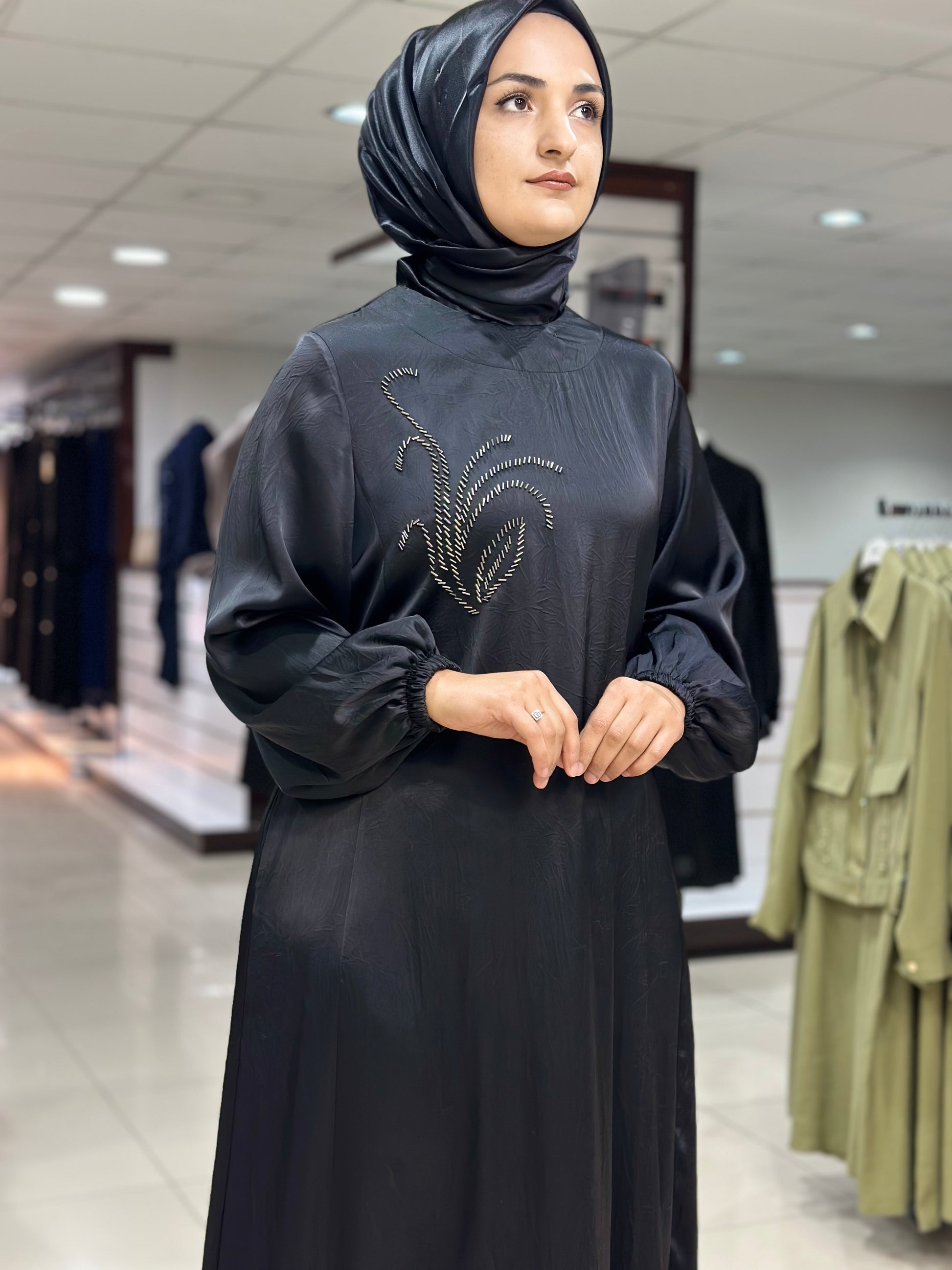 Ön Kısım Boncuk İşlemeli Boncuklar Dikmedir sırt Yarım Fermuar Kol Ağızları Lastikli Seyar Kemer Astarlı Rahat Kesim Alt Etekler Mevlana Kesim